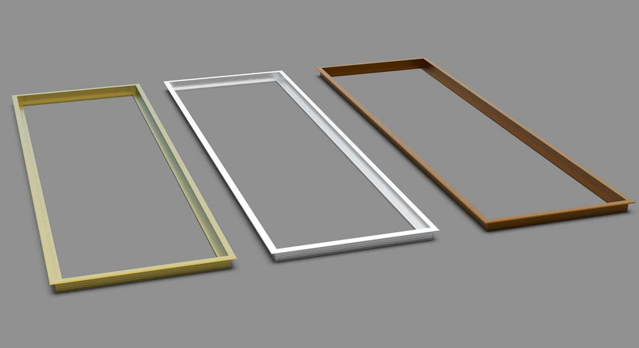 Рамка имеет фланец 13 мм и основание для установки решетки. Профиль поставляется погонными метрами кратно 3 метрам для последующего самостоятельного распила на месте установки согласно размерам конвектора.