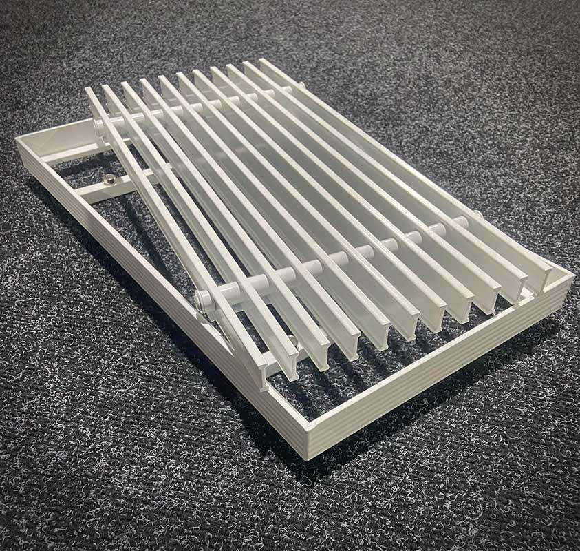 При изготовлении решеток используется запатентованный алюминиевый профиль АДЗ1 (ГОСТ 22233-2018). По умолчанию решетки окрашены полиэфирной порошковой краской белого цвета RAL 9016. По запросу возможно покрытие в другие стандартные цвета по шкале RAL.