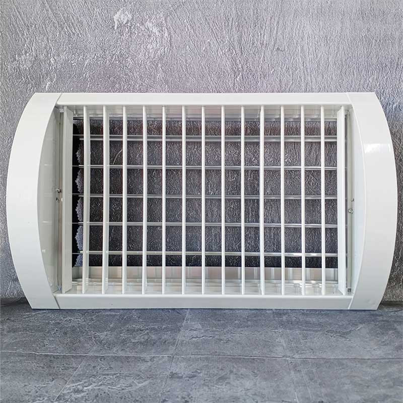 Регулятор потока воздуха - это пластина с регулируемым углом наклона, предназначенная для настройки приточной струи. Решетка с регулятором потока устанавливается с углом наклона пластины навстречу потоку. Рекомендуемые углы настройки от 10° до 30°. В указанных пределах характеристики приточных струй не изменяются.