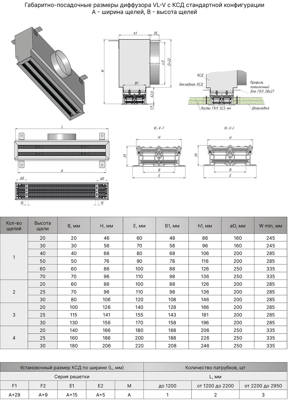 • минимальный запас запотолочного монтажного пространства - 108 мм;